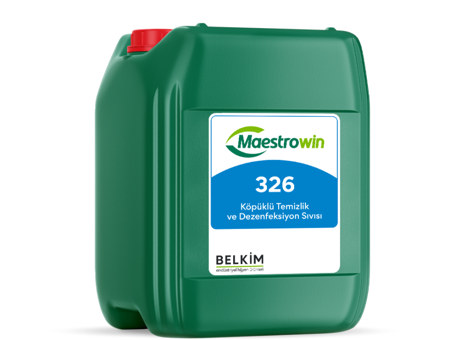 Maestrowin 326, kuarterner amonyum bileşikleri (QAC) esaslı güçlü bir dezenfektandır. Et, tavuk, balık ve diğer gıda ürünleri işleme tesislerinin açık alanlarında kullanılan yüzeylerde ve ayrıca gıda işletmelerinde ayak dezenfeksiyonu için de uygundur. Temizlik ve dezenfeksiyonu tek adımda gerçekleştiren köpüklü formülü sayesinde zaman, iş gücü ve su tasarrufu sağlar.